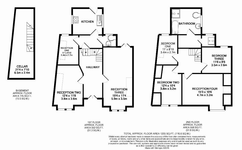 This bright and airy house also benefits from sash windows and wooden flooring. This period property offers a spacious and well designed layout that offers plenty of potential for a potential purchaser. The house offers two reception rooms and a spacious fully fitted kitchen as well as a separate guest cloakroom and a basement/cellar.