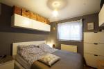Front door opening to hall: Doors to bedroom 1, bedroom 2, door to reception room, kitchen, bathroom, access to loft space, solid wood flooring.