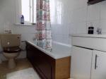 Frosted double glazed window to rear, low/level/wc, panel enclosed bath with mixer tap with shower attachment, wash hand basin with vanity unit, localised tiling, vinyl tile floor, single radiator