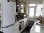 Recently installed wall mounted combination boiler, modern fitted high gloss wall and base units with roll edge work tops, stainless steel sink, single drainer, mixer tap, built in chrome electric fan assisted oven, chrome chimney extractor fan, inset chrome gas hob, and localised tiling, ceramic tiled floor.