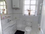 7' 10'' x 5' 1'' (2.39m x 1.56m) Frosted double glazed window to rear, coving, Jacuzzi jet bath, panel enclosed glass, shower screen, wall mounted shower, low level w/c, wash hand basin, vanity unit and mixer tap, extractor fan, tiled walls and floor, built in cupboard.