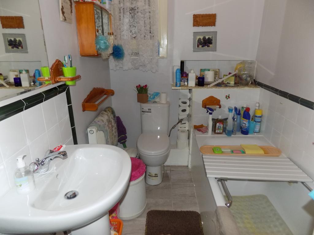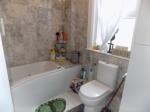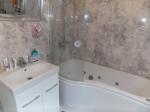 Frosted double glazed window to side, panel enclosed bath with mixer tap and shower attachment, wash pedestal hand basin with mixer tap, low level w/c, single radiator, localised tiling, tiled floor, extractor.