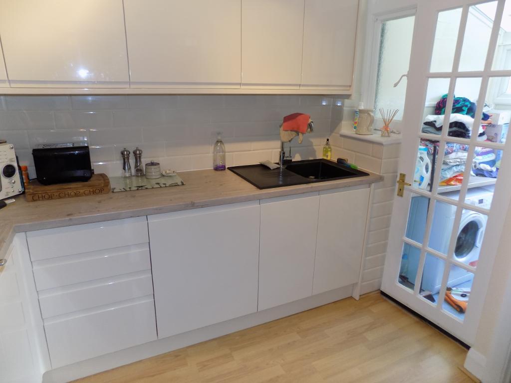 8' 9'' x 6' 6'' (2.68m x 2m) Hardwood glazed Georgian door to rear. Built in electric double oven zanussi ceramic hob, concealed extractor and wine rack. Single bowl sink, single drainer and mixer tap. Integrated dishwasher and range of fitted high gloss wall and base units.