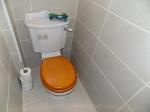 Frosted double glazed window to rear. Low level w/c, tiled walls and floor.