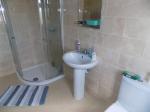 Frosted double glazed window to rear. Low level w/c, wash pedestal hand basin with mixer tap, tilted walls and floor. Extractor, enclosed shower cubicle and wall mounted power shower.
