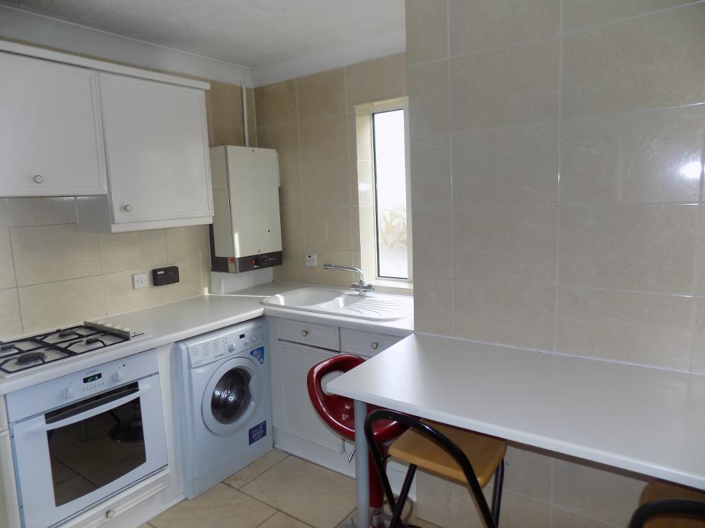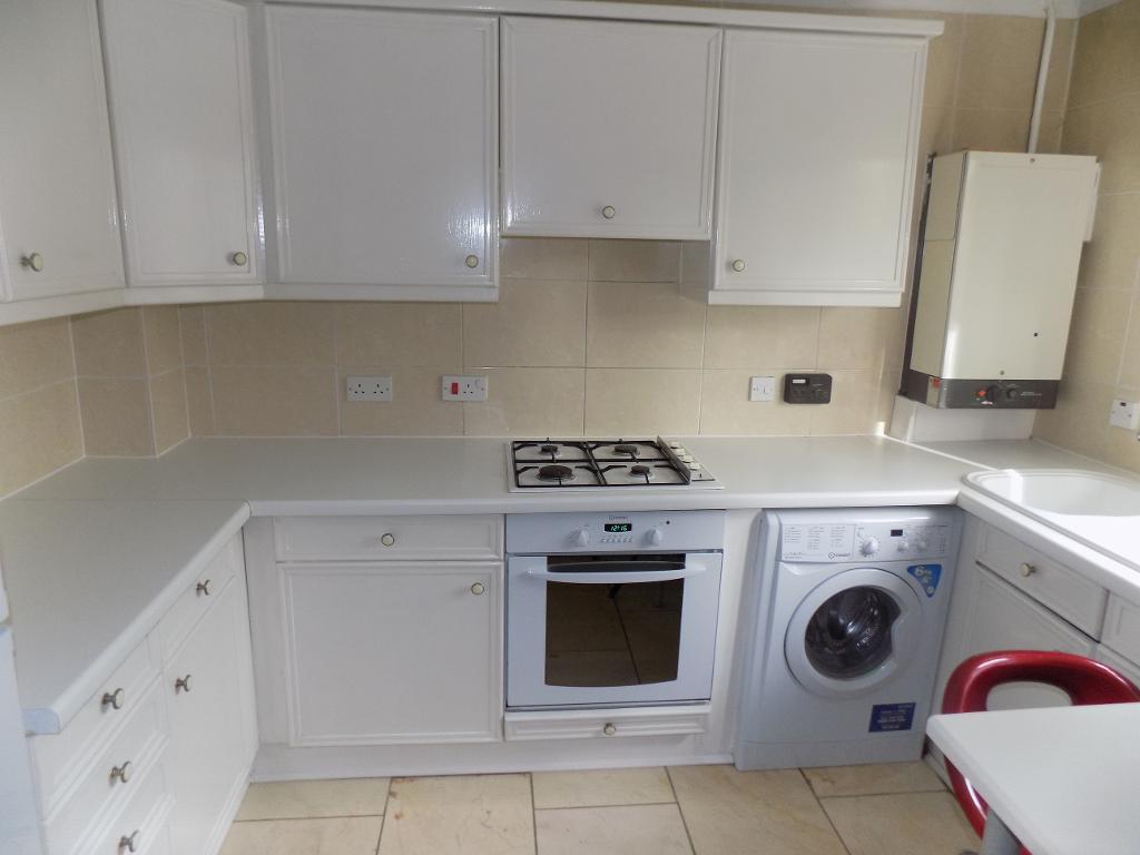 Two double glazed windows to side, range of fitted wall and base units. Breakfast bar, built in electric oven and Inset gas hob, extractor fan, marble flooring with under floor heating. Stainless steele single sink drainer and mixer tap. Plumbing for washing machine. Localised tiling.